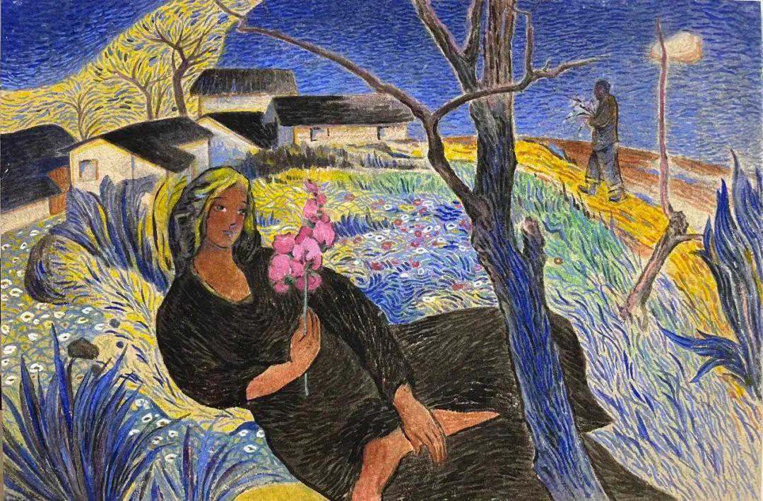 《陌上花开》40cmx60cm麻纸石色2022年