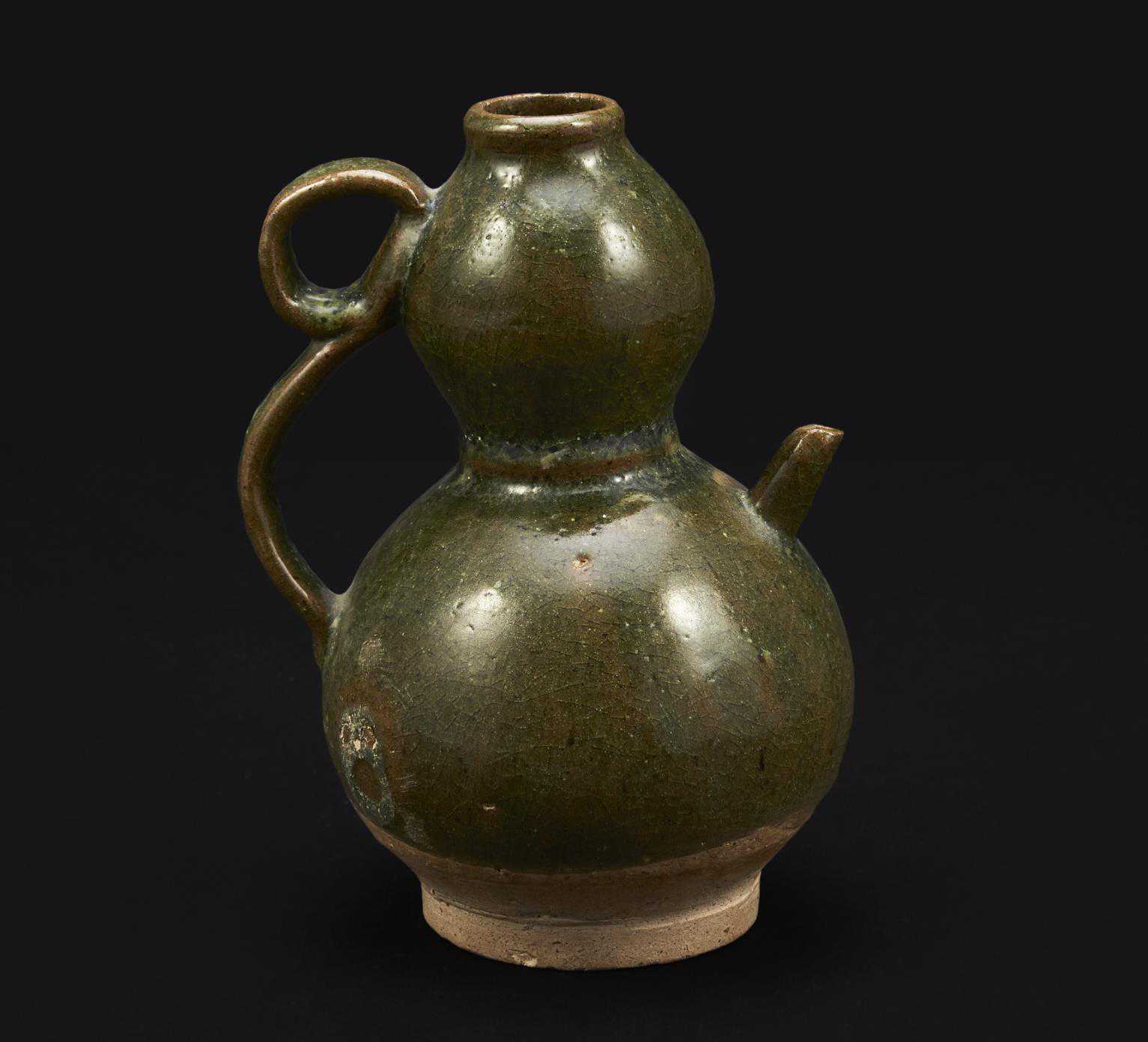 辽代绿釉弦纹葫芦型执壶