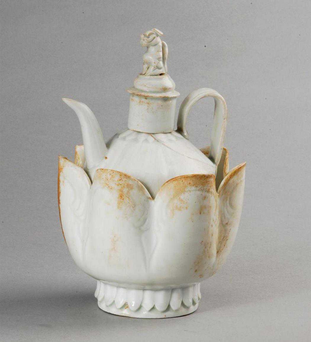 辽代白釉瓜棱狮钮执壶