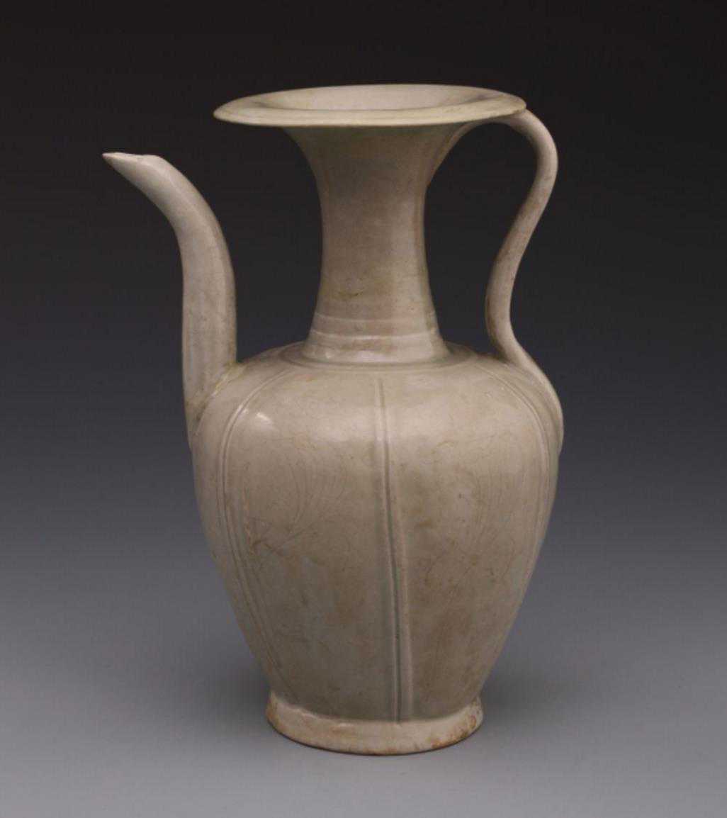 北宋青釉双流刻莲瓣纹执壶