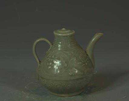 宋代龙泉窑青釉刻花执壶