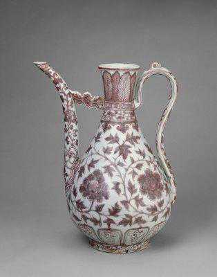 明洪武釉里红缠枝牡丹纹执壶