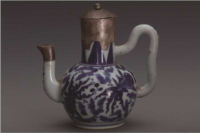 执壶最初的造型是由青铜器而来,南北朝早期的青瓷当中,已经完成了这种执壶的造型。其后在唐宋两代是金银器中的一种酒具,这从唐宋绘画上是很容易看到的。直到现在,还有宋代青白瓷的执壶流传下来。