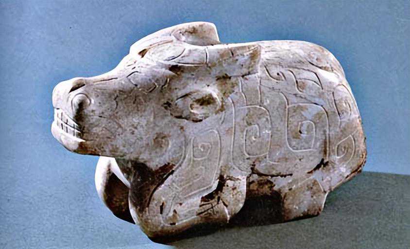 妇好墓的石牛带有纹饰。。。
