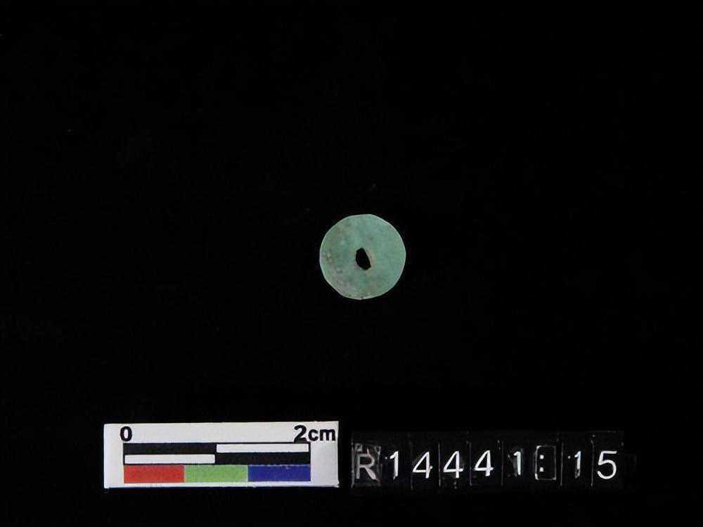 1500墓出的珠珠。。。都是绿松石圆片状。。。未见玉质的。。。