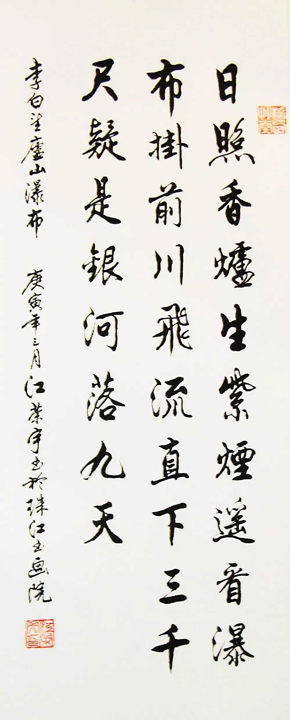 江荣宇,现年80岁,历任香港珠江建筑装饰集团董事长、广州珠江建筑装饰有限公司董事长、广州牧马人广告公司董事长、香港珠江书画院院长、“创意装饰”杂志社社长,广州珠江画院院长,被聘为中国兰亭书画院名誉院长等十多个社会职位,近年来参加国内外有关展览,先后荣获金奖40多个,并被授予“当代名家”、“杰出艺术家”等荣誉称号。