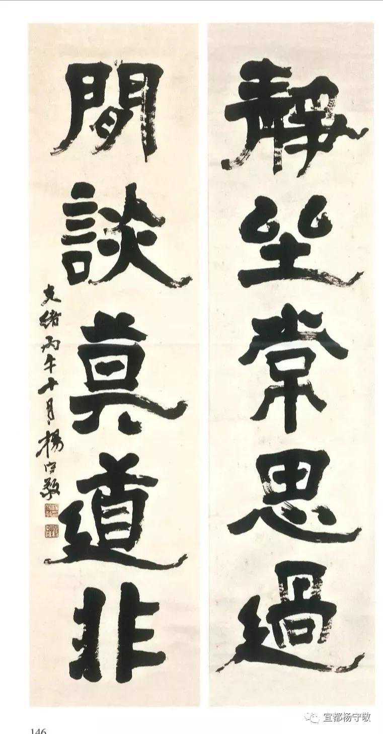 释文:静坐常思过,闲谈莫道非。光绪丙午(1906)十月杨守敬。钤“杨守敬印吾”白、朱二印。