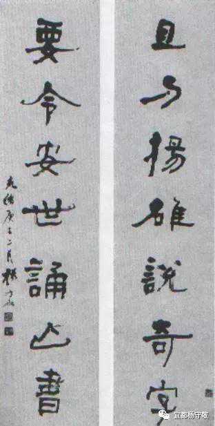 杨守敬隶书有的初看似乎稚拙,细细品味才见精巧,章法、行气也见灵动之气,沉着有力,古妙异常。