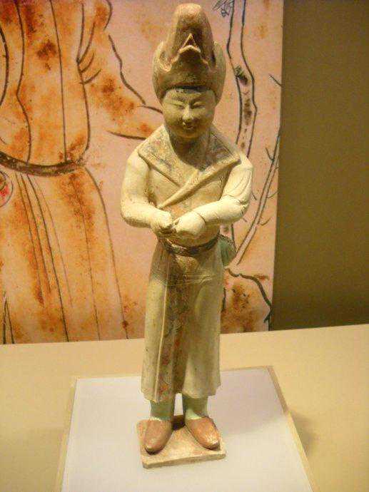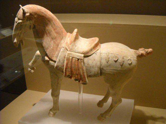 图中出現陶马及牵马俑人,皆是往來於西域等西方客商和流寓長安、洛陽等城市經商的人。證明了唐代與西方民族友好往來的密切程度。