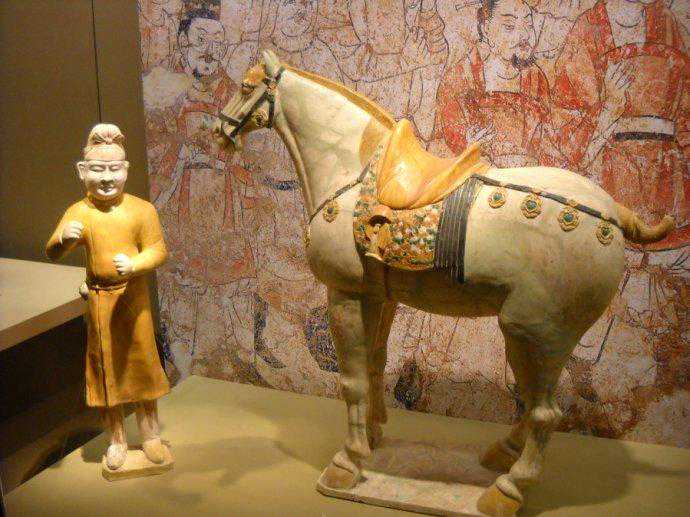 唐代彩绘三彩釉陶马及牵马俑赏析