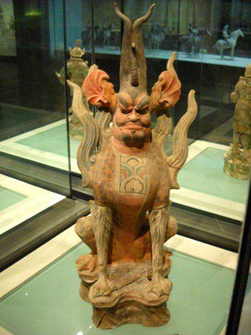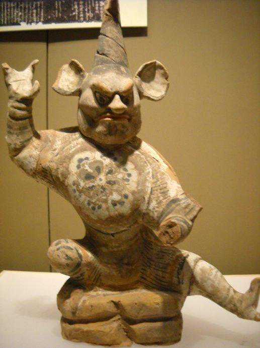 唐代贵族墓葬多置镇墓陶兽于墓室门口或四角,他们相信面目狰狞的镇墓陶兽能保护墓主,驱走邪魔妖道,防止盗墓者入侵墓室重地,属压胜之物。