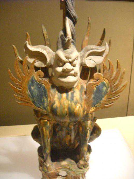 博文中展示的是唐代时期的“彩绘三彩釉镇墓陶兽”。镇墓陶兽是我国古代墓葬中常见的一种怪兽;有兽面、人面,鹿角,是为镇慑鬼怪、保护死者灵魂不受侵扰而设置的一种冥器。