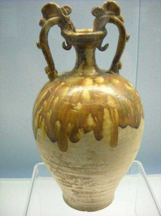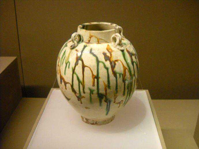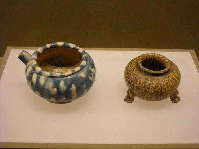 唐代三彩釉陶注子唐代绞胎釉三足陶罐