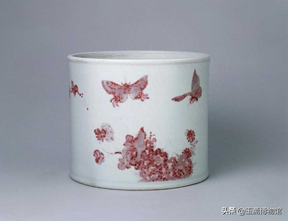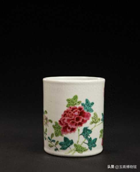 清雍正木纹釉粉彩空谷幽兰图笔筒