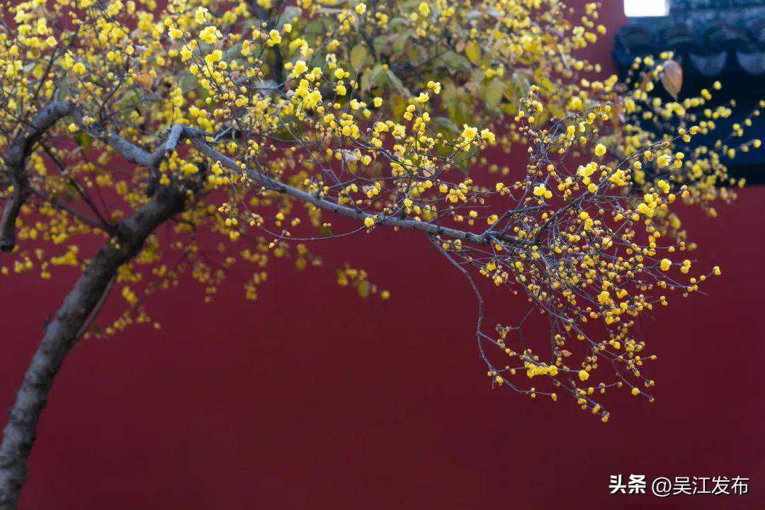 这一季的黎里古镇,昭灵观红墙蜡梅成了顶流。观里的蜡梅树下甚至排起了队,长枪、短炮、手机……以红墙为背景,人与蜡梅相映成黎里冬季的靓丽风景。