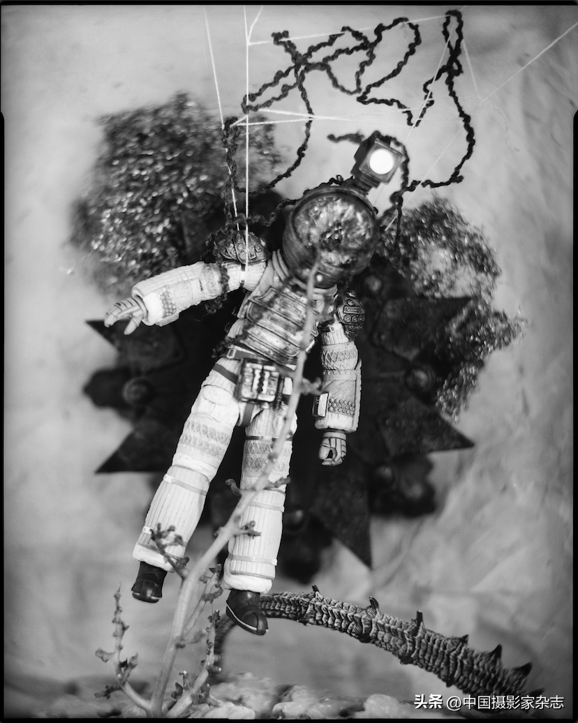 第三篇章进入想象力的宇宙,大画幅摄影没有边界,只有无限可能。郑飞《重构与改变》、林添福《湿版冰花》、陈京伟《盲盒》三位摄影师天马行空,风格迥异。大画幅摄影与数字技术结合,使工业产品的金属光泽与炫酷造型表现更上一层楼;当代湿版工艺创新化学物质与影像表现,追寻生命的洪荒之力;反大画幅视觉惯式的魔盒也欣然打开,在模糊光炫的视觉世界里,过去与未来同在。