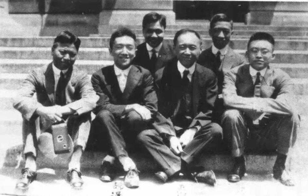 陶行知赴美途中与同学在邮轮甲板上的合影,前排左一为陶行知。
