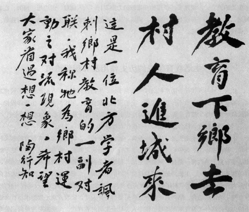 在参与推进平民教育的过程中,陶行知日益清楚地认识到乡村教育对社会改造和社会平等的关键意义,认识到民众十之八九住在乡下,平民教育“就是到乡下去的运动”,就是“处处读书,人人明理”,造就现代国民,最终“以统一的教育促成统一的国家”(《平民教育概论》,1924年)。他是非常善于鼓动的,提出“我们的新使命,是要征集一百万个同事,创设一百万所学校,改造一百万个乡村”。他认为乡村教育不是教会农民向城里跑,而是改造乡村生活,发展科学和为农民谋利益的农业经济,让普通农民像其他人一样获得有尊严的生活,让无数个获得新生的乡村汇聚成国家的新生。