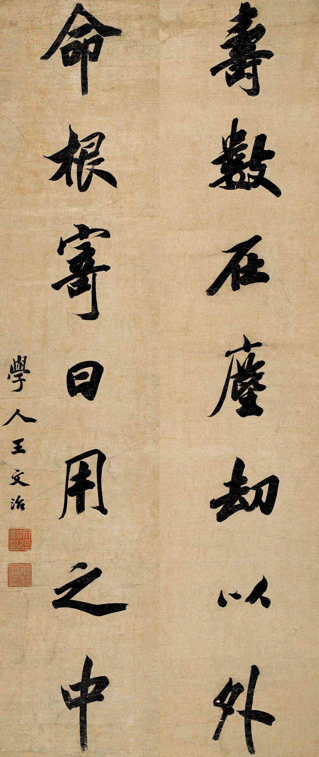 释文:寿数在尘劫以外,命根寄日用之中。学人王文治。