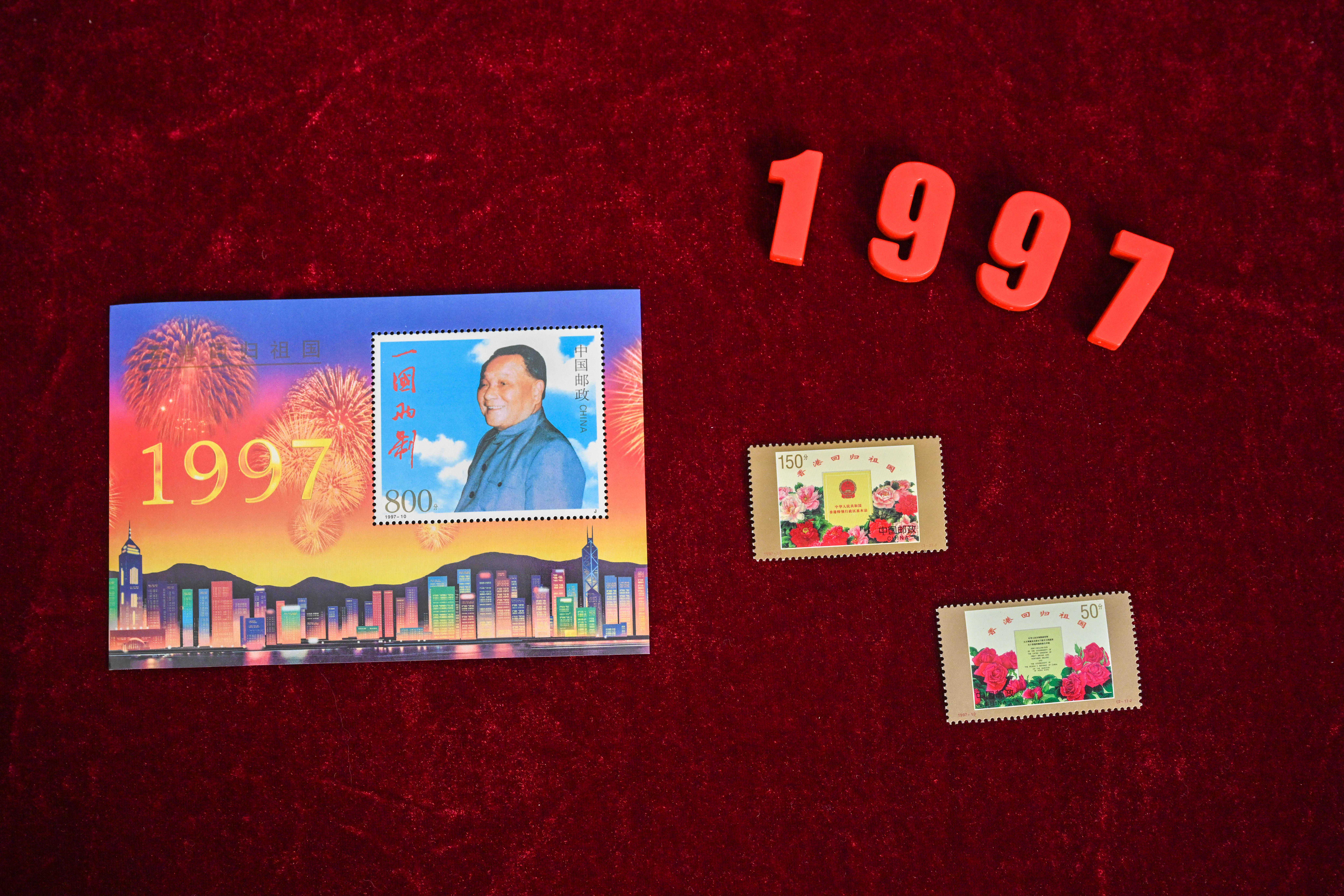 看到《香港回归祖国》邮票,就想起1997年6月30日晚上,人们等在香港回归的倒计时牌下,在7月1日零时即将到来时,人们一起大声喊着“10、9、8、7……1”,为香港回到祖国怀抱而欢呼雀跃。