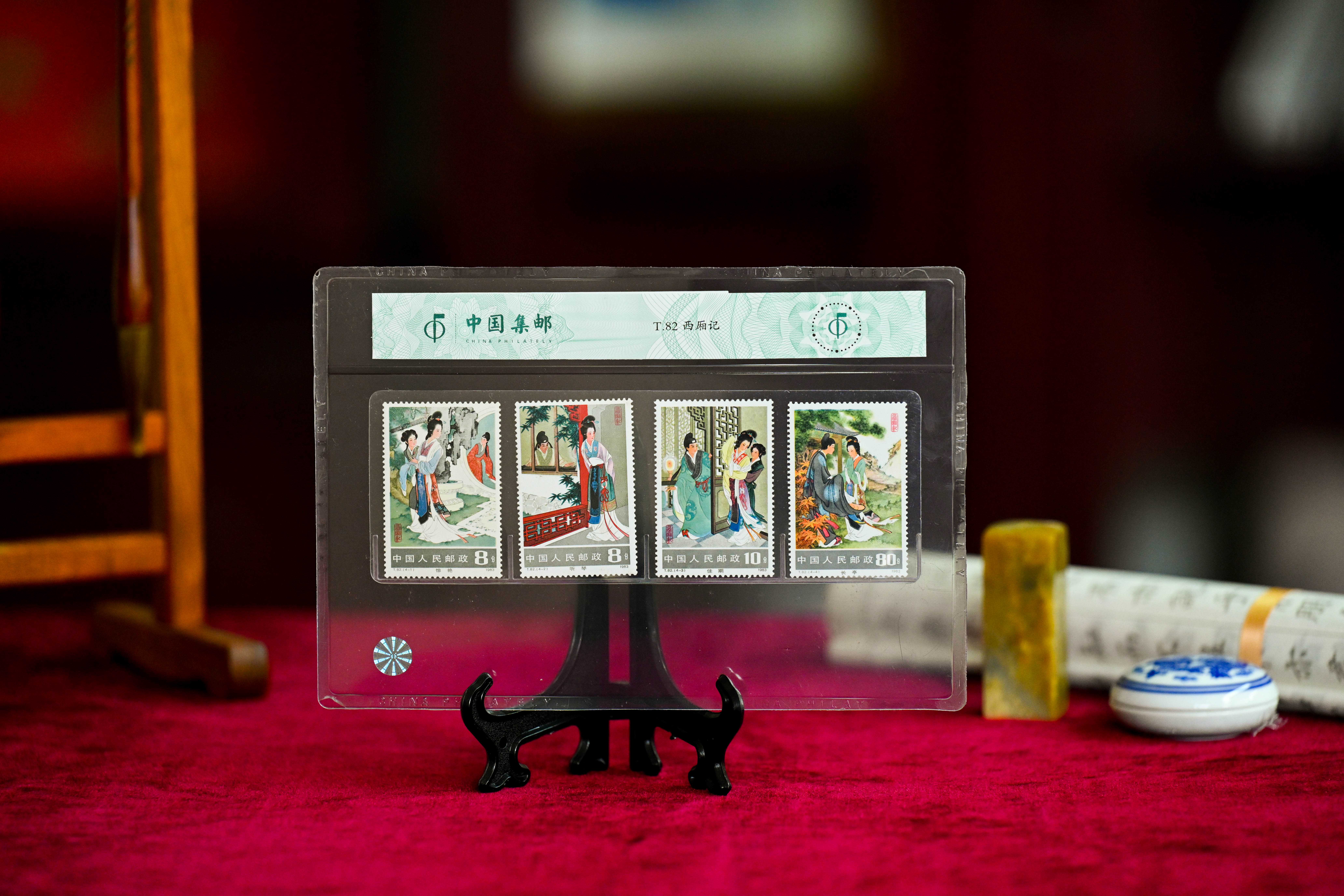 对邮票的情怀,既有对邮票本身的,也有对邮票内容的。这些年连续发行的古典文学名著系列邮票,不仅有经典的四大名著,还有《西厢记》《聊斋志异》等,每一枚邮票,都让我脑海中隐隐约约的人物形象变得具体而真实。最近有几位中年朋友来观看邮册,当他们看到动画系列邮票——大闹天宫、葫芦兄弟、哪吒闹海、黑猫警长时,无不是仔细端详的样子,他们应该都是看着这些动画片长大的,对这些动画故事有深深的情怀,恰好邮票可以让他们慢慢回味。