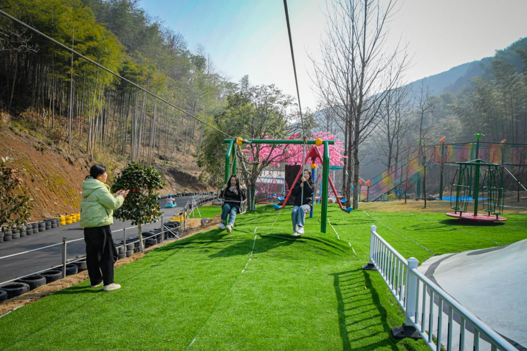 导航来到女儿山无动力探险乐园,这就是我们旅途的第一站。乐园选址优越,坐落在山水之间!园内含20多项无动力设施和玩法,新西兰滑板车、魔网蹦床、丛林探险、溜索、恐龙之家、旋转太空人大人小孩全年龄段都有可玩的项目。