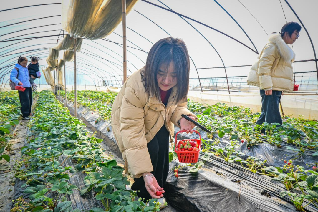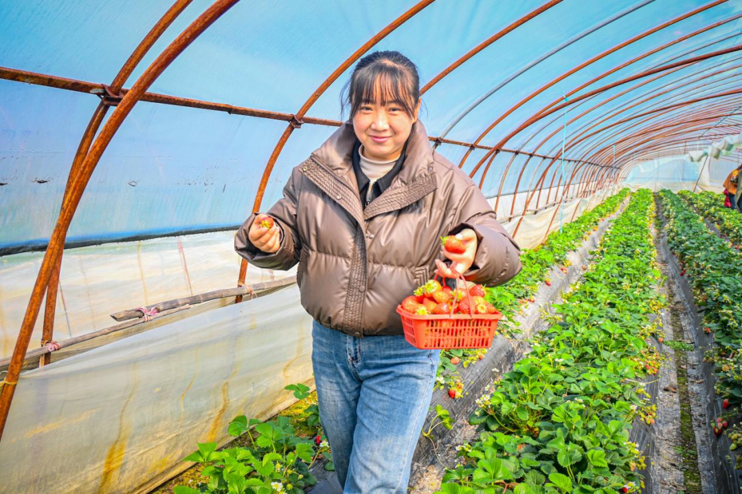 驾车大约花上5分钟,便抵达我们今天的第二站——沙埠村草莓采摘园。走进温暖的草莓大棚,放眼望去一片草莓的海洋,闻起来果香扑鼻,尝起来更是软糯香甜。提携着采摘篮,和亲朋好友一起在草莓园中穿梭,欢乐弥漫在整个草莓园里,收获的不仅是果实,还有满满的快乐!