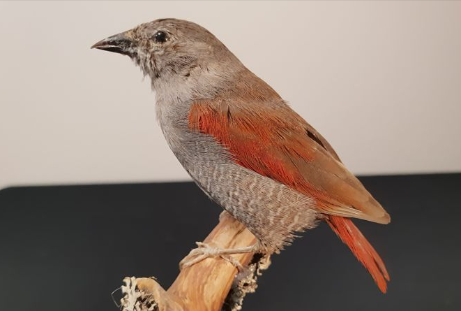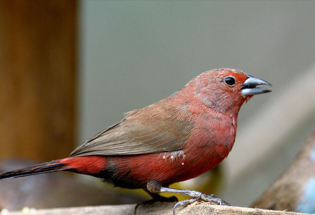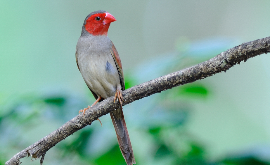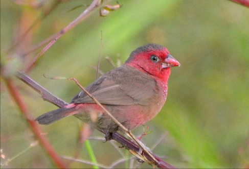 火雀类:主要在非洲,是几种红、褐相间或红、黑相间的鸟类。体下侧常有小白点。下图依次为:斑胸火雀、红腹火雀、红眉火尾雀、红嘴火雀