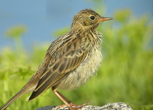 鹡鸰类:包括鹡鸰和鹨(liù)。体型较纤细。喙较细长,先端具缺刻;翅尖长,内侧飞羽极长,几与翅尖平齐;尾细长,外侧尾羽具白,常做有规律的上、下摆动;腿细长后趾具长爪,适于在地面行走。栖息于湿地附近,在洞穴中筑巢。常见的有:灰鹡鸰、白鹡鸰、山鹡鸰、田鹨(理氏鹨)、树鹨、林鹨、山鹨、草地鹨、水鹨