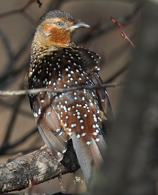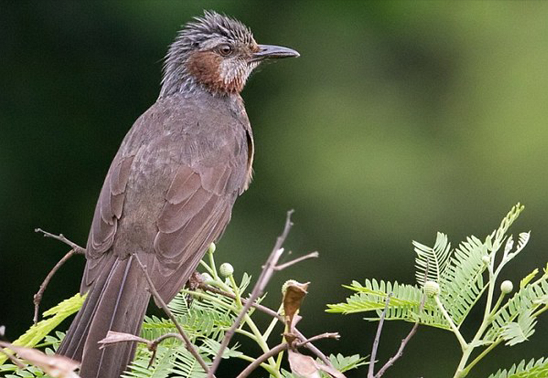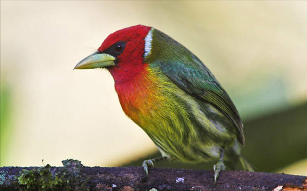 星雀学又名星文鸟,雄鸟脸颊红色斑块部分宽而明显,雌鸟斑块小而且颜色淡,同种常见的还有褐头星雀以及赤胸星雀。