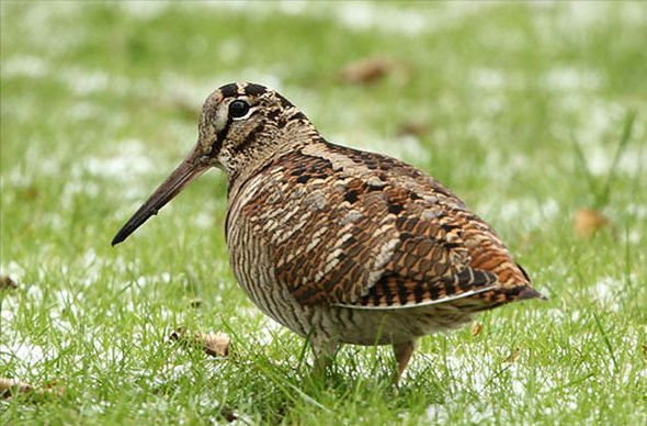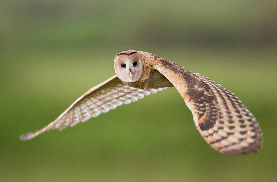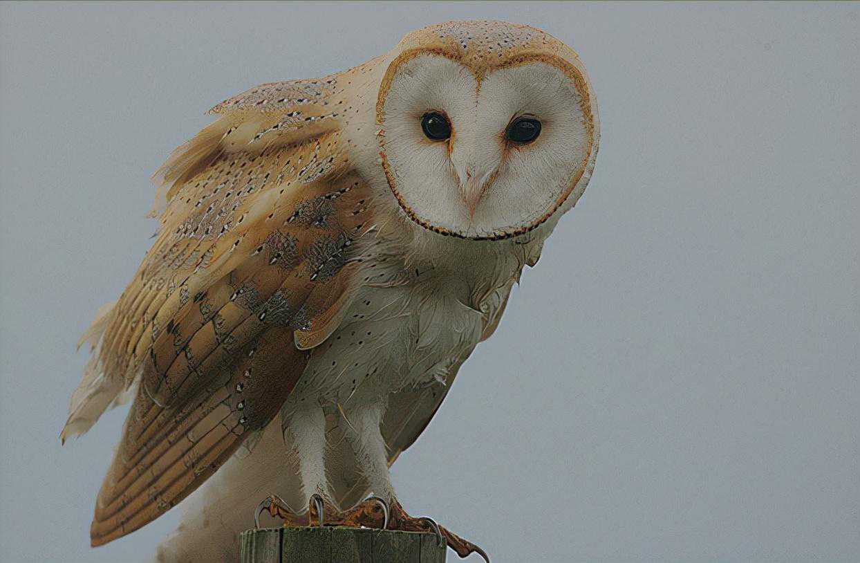 仓鸮又叫猴面鹰,头大而圆,面盘白色,有时沾棕,特别是眼先棕色,眼周浅棕色。面盘四周围有一棕色或橙黄色领环,颈侧及肩浅棕黄色,微具黑褐色及白色斑点。其余上体浅灰色,羽缘棕黄色,各羽遍布浅褐色虫蠹细斑,近末端处有黑缘的白点。