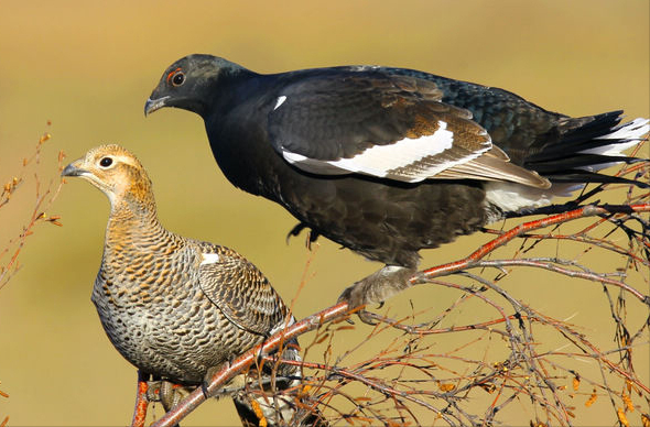 雕:形态像鹰,但比鹰大得多,翅膀宽大,身体粗壮,羽毛有褐色有近灰色的。巢营于高山悬岩上或峭壁的树上,迁徙时在我国东北常能见到。