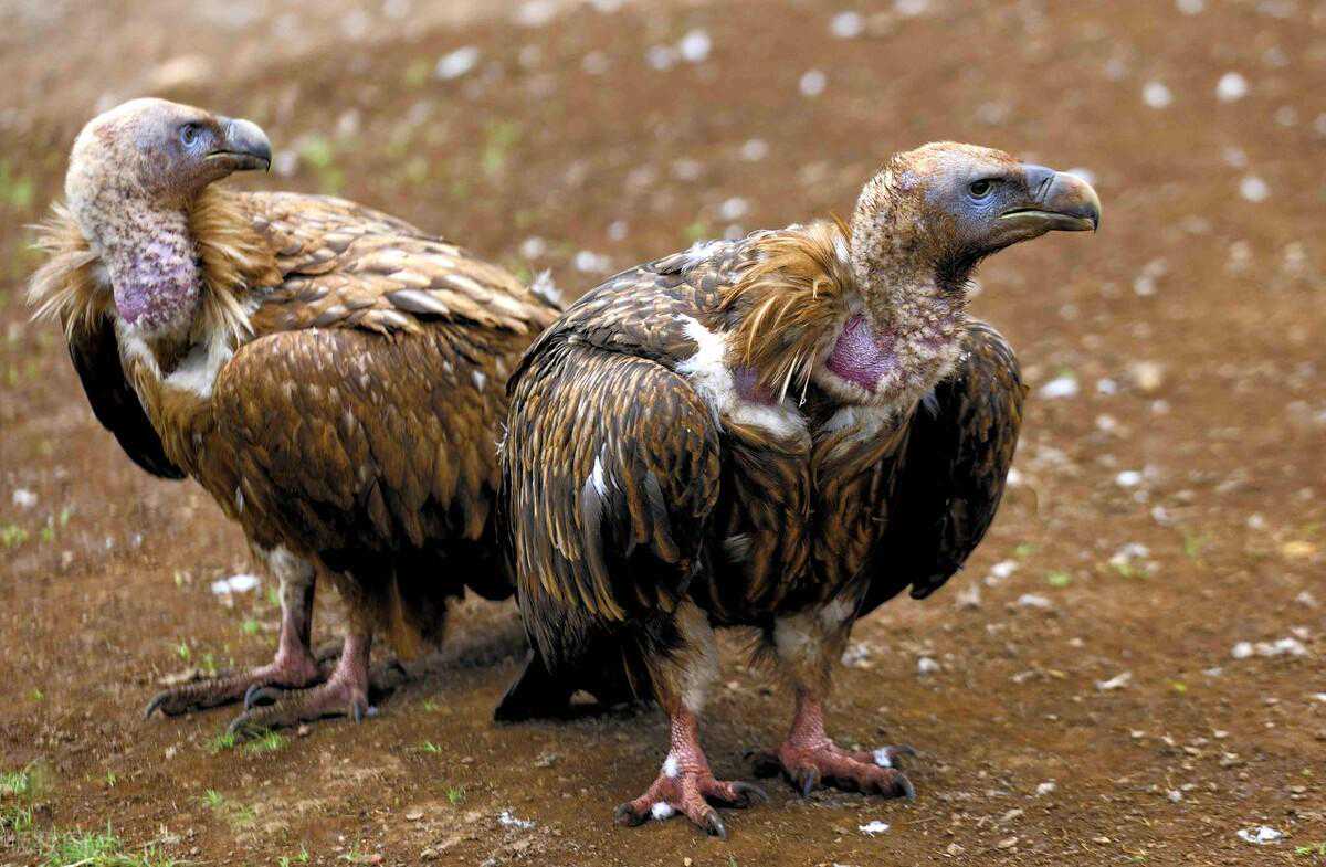 鹫:与鹰类、雕类和隼类都有亲缘关系,但爪较弱,头多秃,主要或全部以腐肉为食,如秃鹫(座山雕)、兀鹫。毛色深褐,体大雄壮,嘴呈钩状,视力很强,腿部有羽毛,捕食野兔,小羊等。亦称“雕”。鹫是目前世界上飞的最高的鸟之一,飞行高度可达10000米以上。