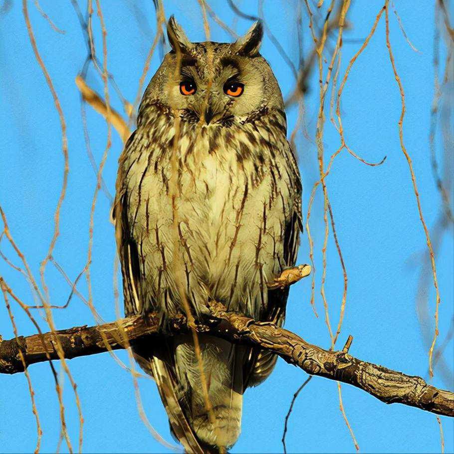 枭、鸮:猫头鹰:学名鸮、枭。俗名秃鹪。栖丛林或山崖,夜出昼没,声叫凄厉,人闻不吉,常被驱赶,夜间捕鼠为食,益鸟。猫头鹰的眼睛长在头部前方,不像别的鸟那样长在两边,因此它们想全方位观察四周情况时,只能不停地转动脑袋,视物能力超过人类一百倍。
