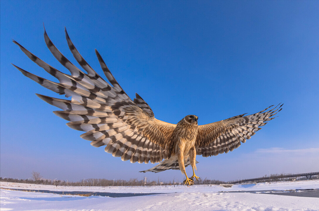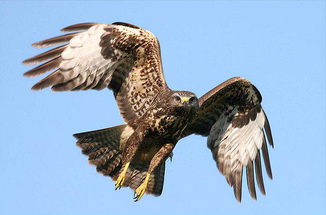 鵟(kuang):是体型较大的鹰隼类猛禽,一般多在空旷地区的高空盘旋,俯视地面的猎物,发现后,疾速俯冲抓食。在我国最常见的有普通鵟、大鵟及毛脚鵟三种。