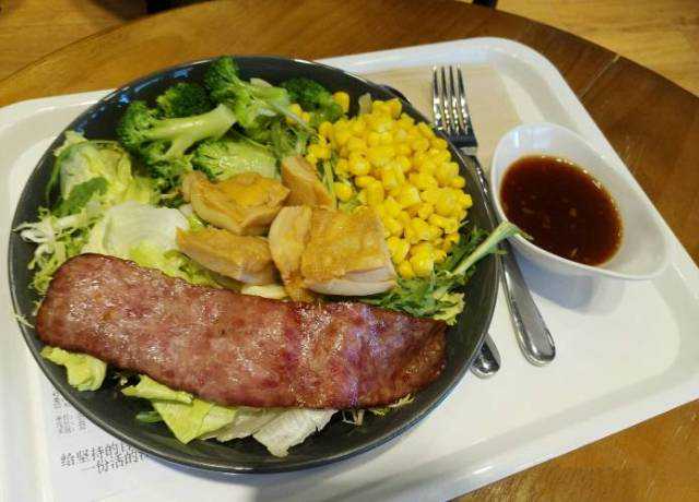 菜单是自选模式,用筹码结帐,筹码上有标注价钱和卡里路,很方便。可以自选菜品搭配,也可以直接选店家配好的。很适合需要控制卡路里的小伙伴。沙拉还分了蔬菜、水果、肉类、主食类,完全可以吃饱。
