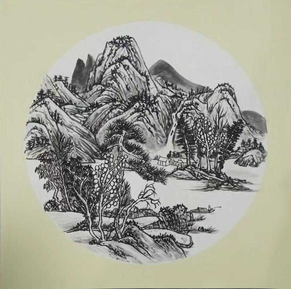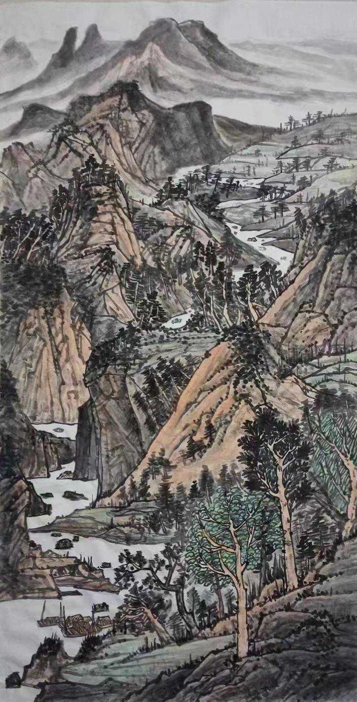 2021年2月国画作品《锦绣青山》入展一路向阳咸阳市迎新春艺术精品展。