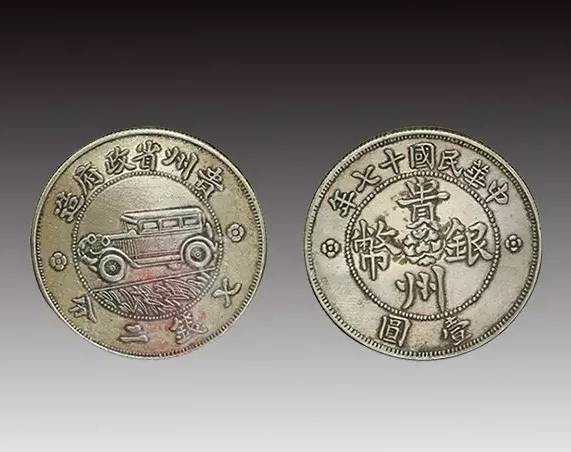 贵州汽车银币,属于民国时期银币的较珍贵品种。其最为独特之处是,既采用了现代“壹圆”纪值,又采用了清代的“七钱二分”纪值,可谓封建与共和共存,别具政治和观赏价值,收藏价值极高。