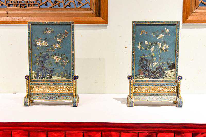 张宗宪是当今世界上收藏明清宫廷掐丝珐琅器的重要私人藏家。此次捐赠给上海博物馆的这批珐琅器,不乏可供多角度研究、展览的精品佳作。其中包括明早期掐丝珐琅觚一件,为仿青铜觚造型,花形饱满,胎体厚重,釉质纯正,具有早期掐丝珐琅器的特色。清乾隆掐丝珐琅蝴蝶纹屏风(一对),此对屏风掐丝均匀流畅,釉质纯净,纹饰秀雅脱俗,为乾隆时期珐琅器的典型作品。另有一对体量硕大的清乾隆掐丝珐琅花鸟纹象足熏炉,纹饰与宫廷器物相异,具有地方特色,为扬州制品,是目前所知存世掐丝珐琅熏炉中最大的一对,颇为珍贵。