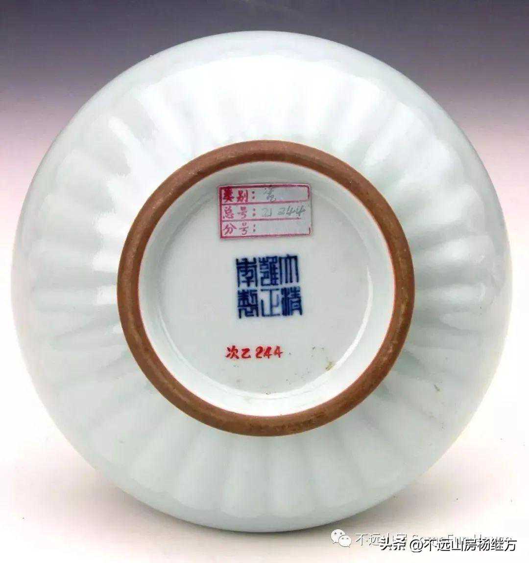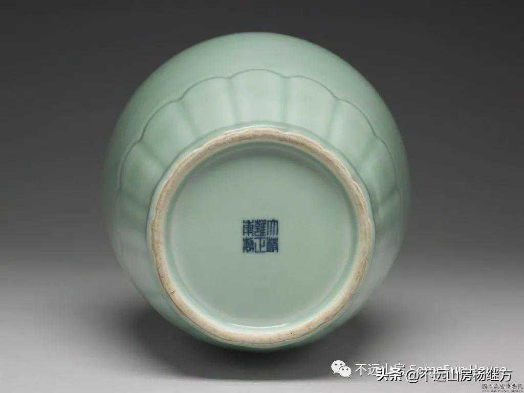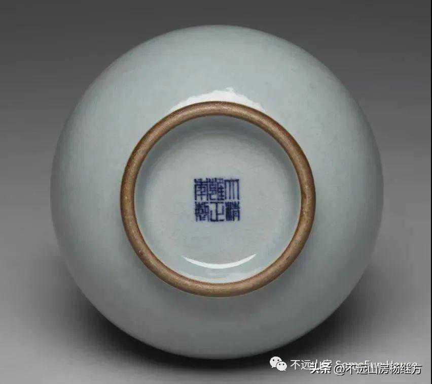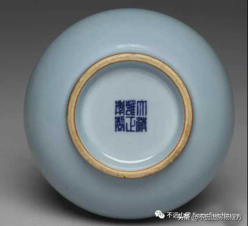 中贸圣佳25周年清雍正粉青釉三系九弦纹梅瓶款识:“大清雍正年制”六字三行篆书款