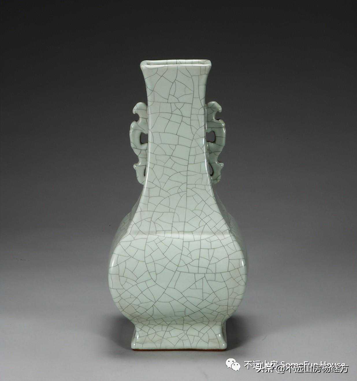 故宫博物院藏清雍正仿官釉贯耳穿带方壶