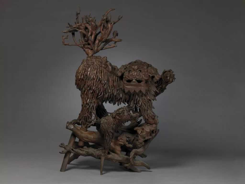 晚清到民国时期,民间艺人雕刻时,受到身边环境的影响,罗汉常如戏曲中的形象一样头戴金箍,装扮类似头陀,而狮子则刻的甚小,尾巴上竖,头部高昂,犹如一只小狗般在一旁嬉戏,有的“狮子”的嘴吻甚长,耳朵宽大垂折,已经毫无猫科动物的影子。