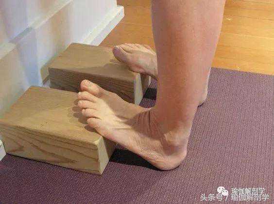 双脚前脚掌放在瑜伽砖上