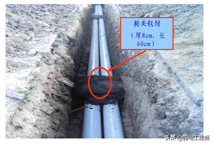 a、在特殊路段无法满足上述埋深要求时,当采用塑料管敷设时,若管道顶至地面距离大于0.3m时,采用混凝土水泥(C15)包封,包封厚度15~20cm。若管道顶至地面距离在小于0.3m时,必须采用无缝镀锌钢管保护。对于共建或合建的PVC管道群在特殊路段,管道群最上层管孔的顶层距地面小于0.15m而又无法使用钢管保护的应采用包。