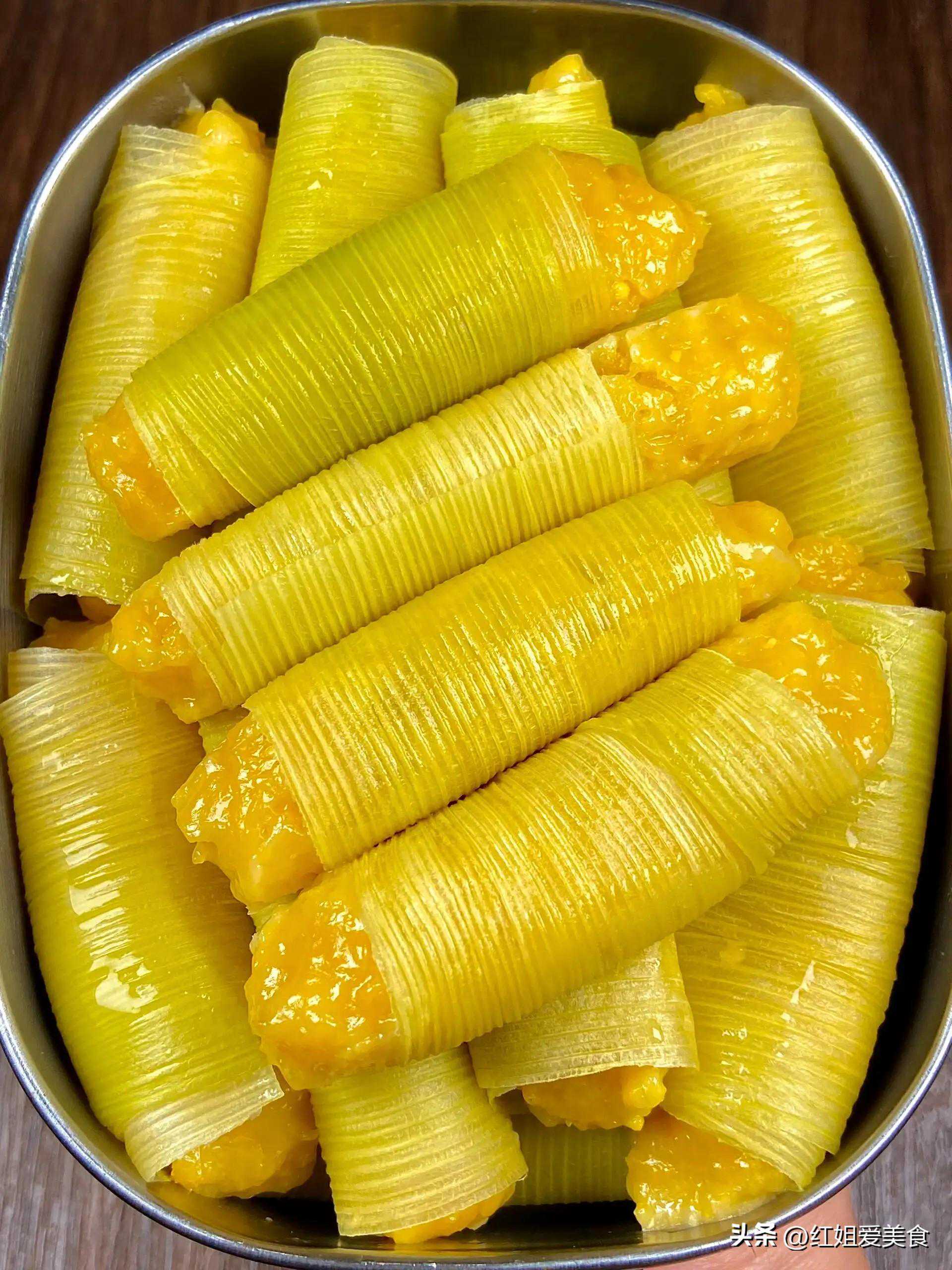 它由糯米粉制成的面团包裹着鲜嫩的玉米粒,蒸熟后形成糯糯的外皮和浓郁的玉米香味,是一道美味可口的早餐或下午茶点心。