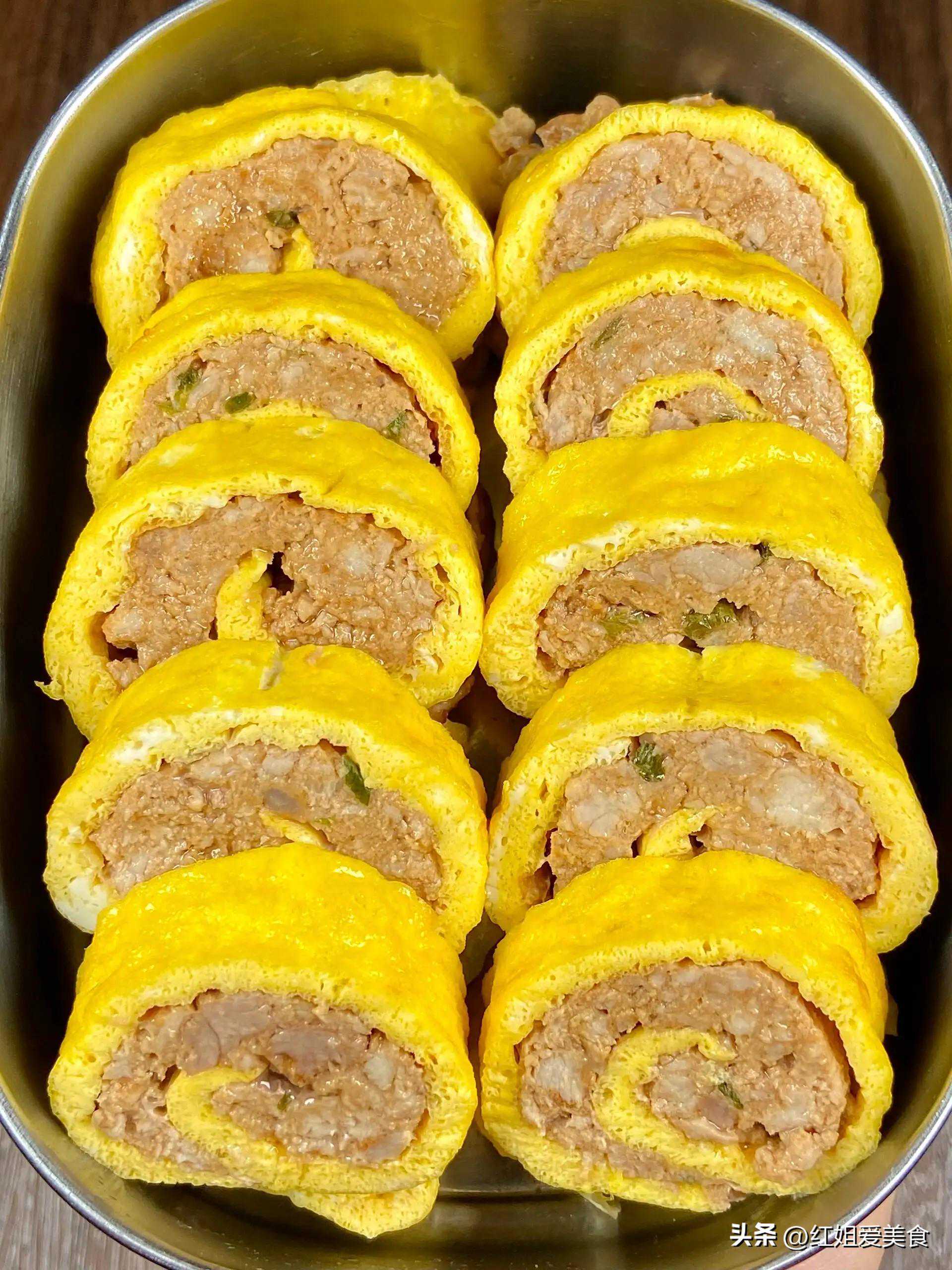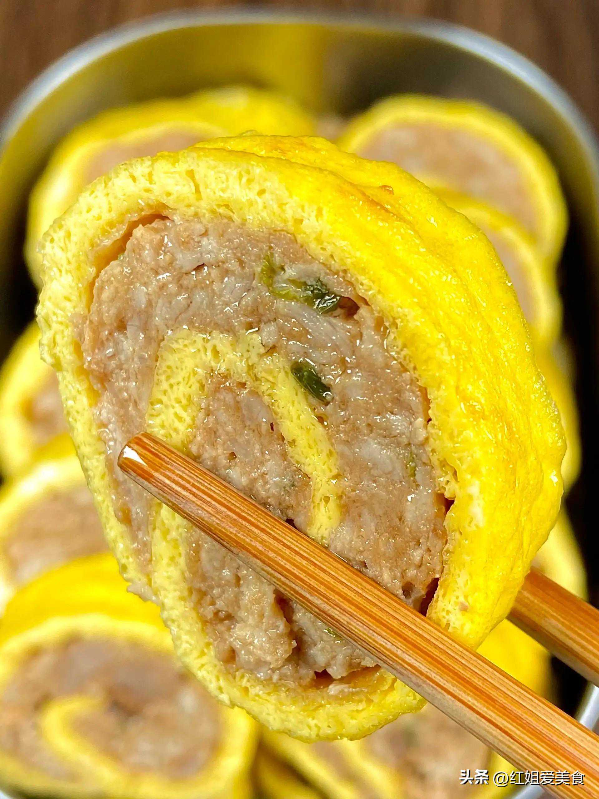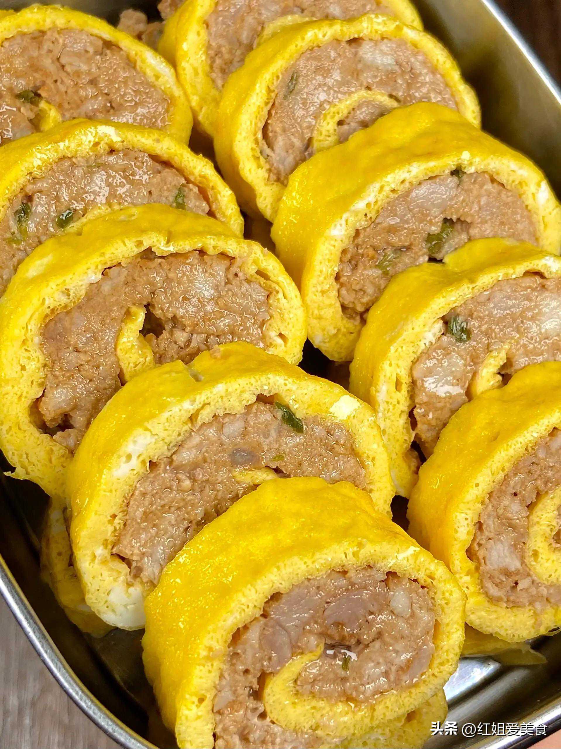 3.鸡蛋卷包肉末:
