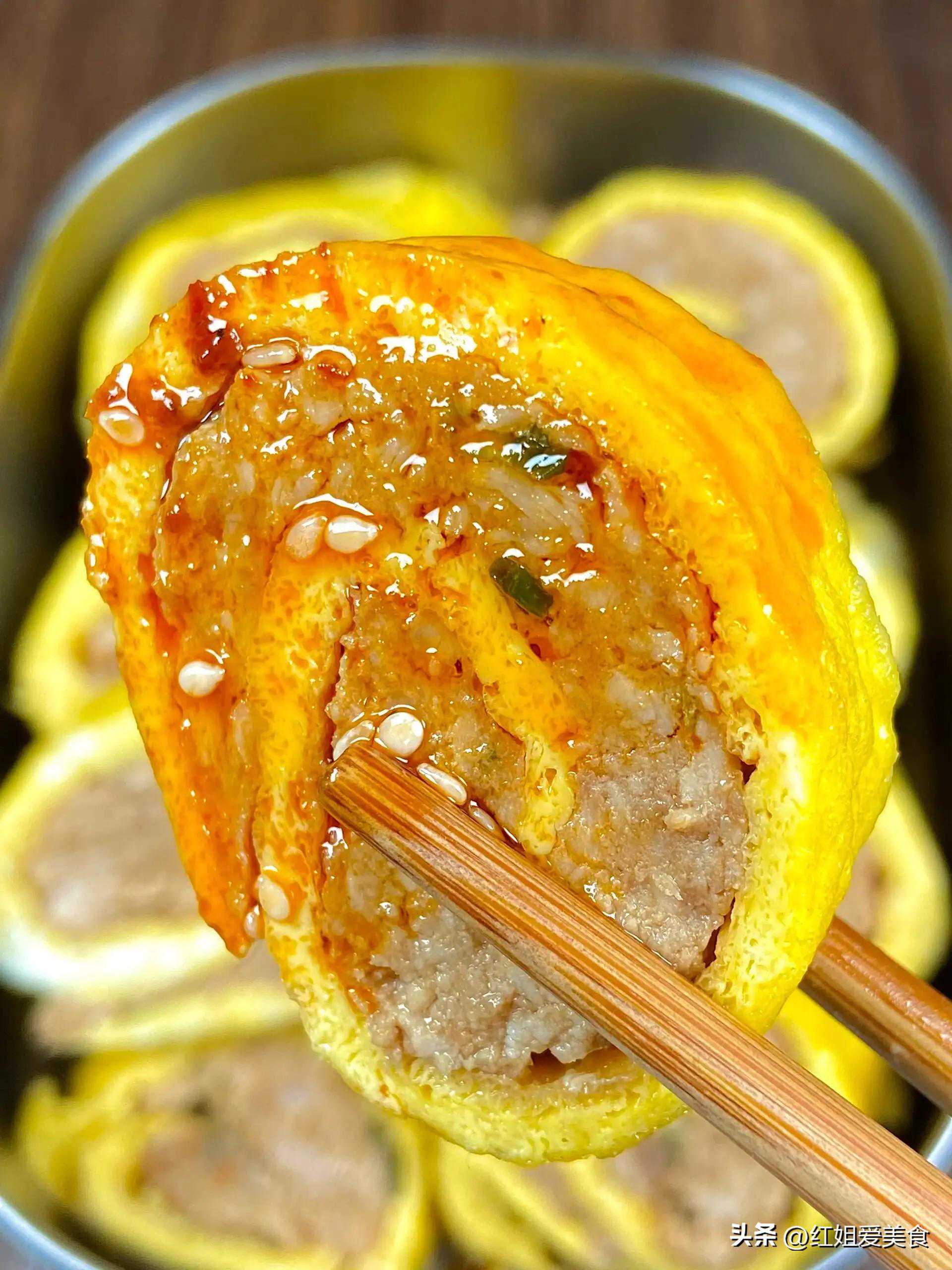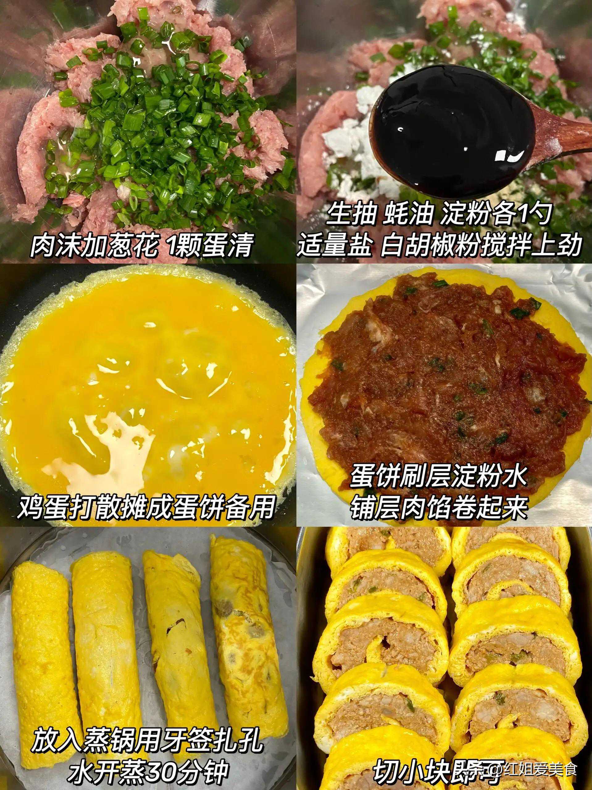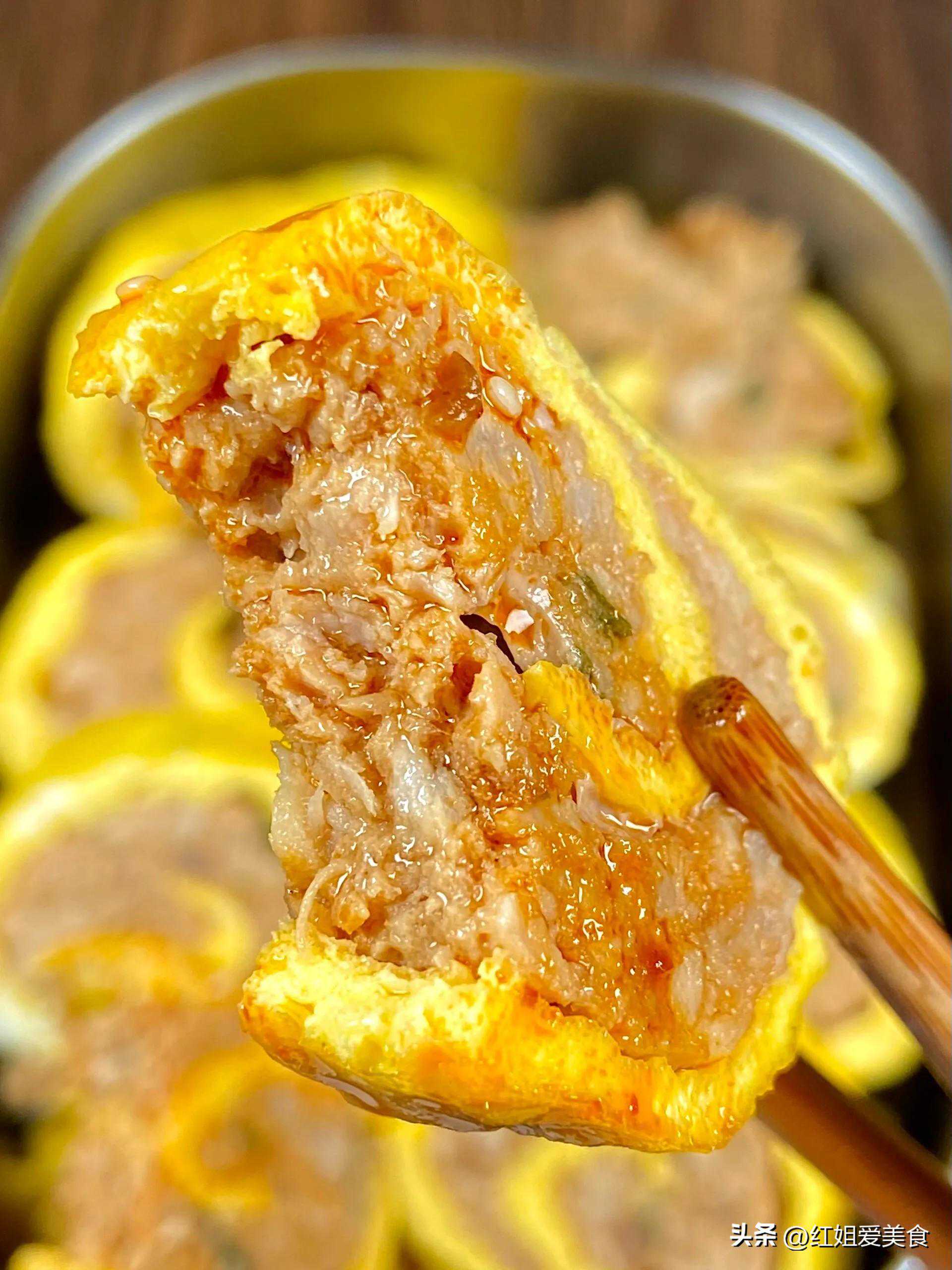 3.鸡蛋卷包肉末: