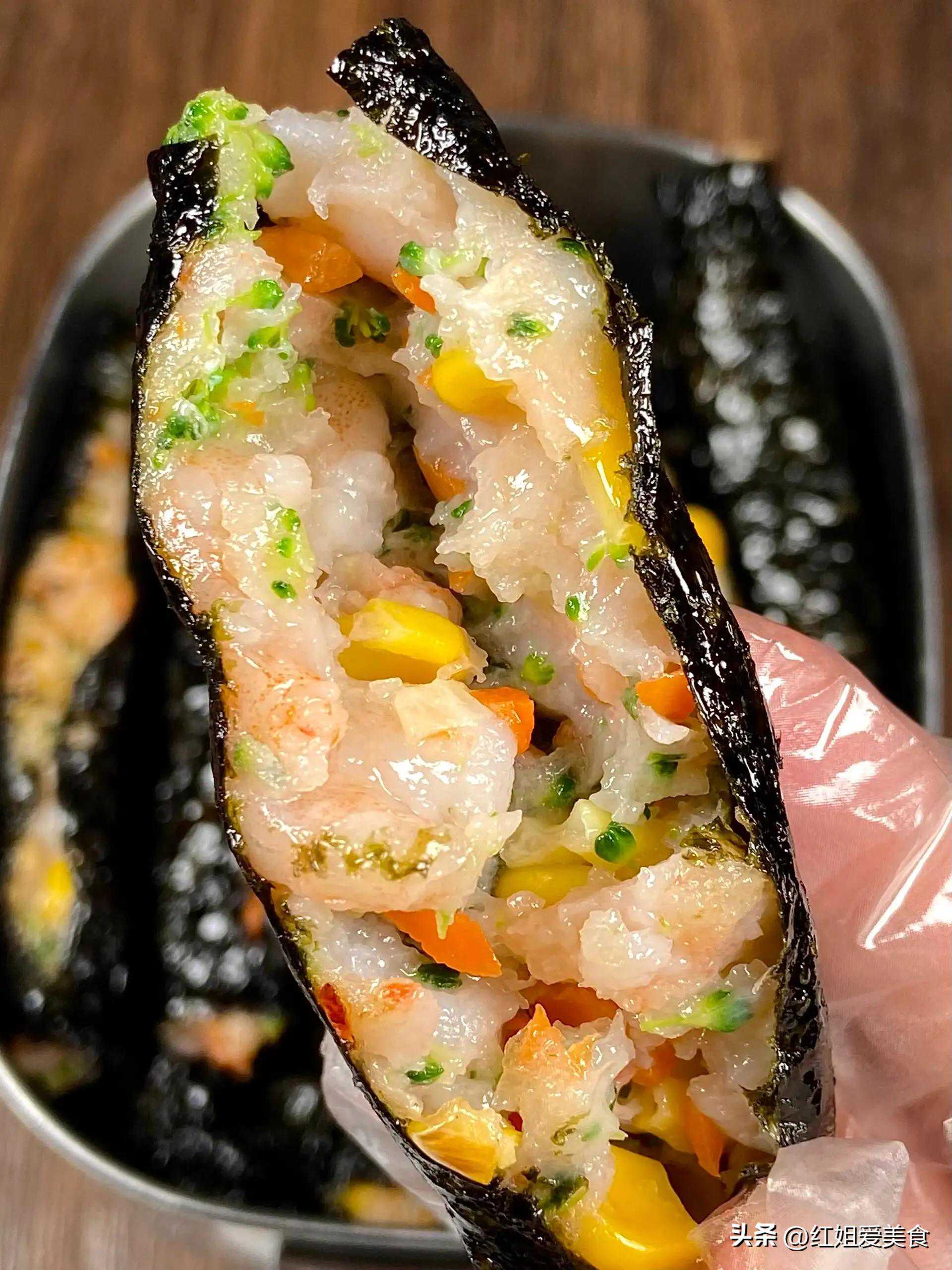 7.海苔包玉米胡萝卜虾滑:
