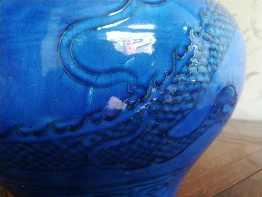 今天的这只元代孔雀绿釉沥粉云龙纹大罐系景德镇窑产品,较之宣德孔雀绿釉云龙纹盘更为珍稀。品相如此完好之大件,在国内外馆藏和网上网下的交流中仅见此独一件。