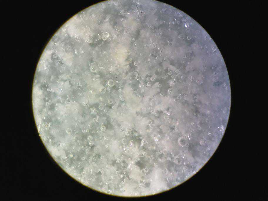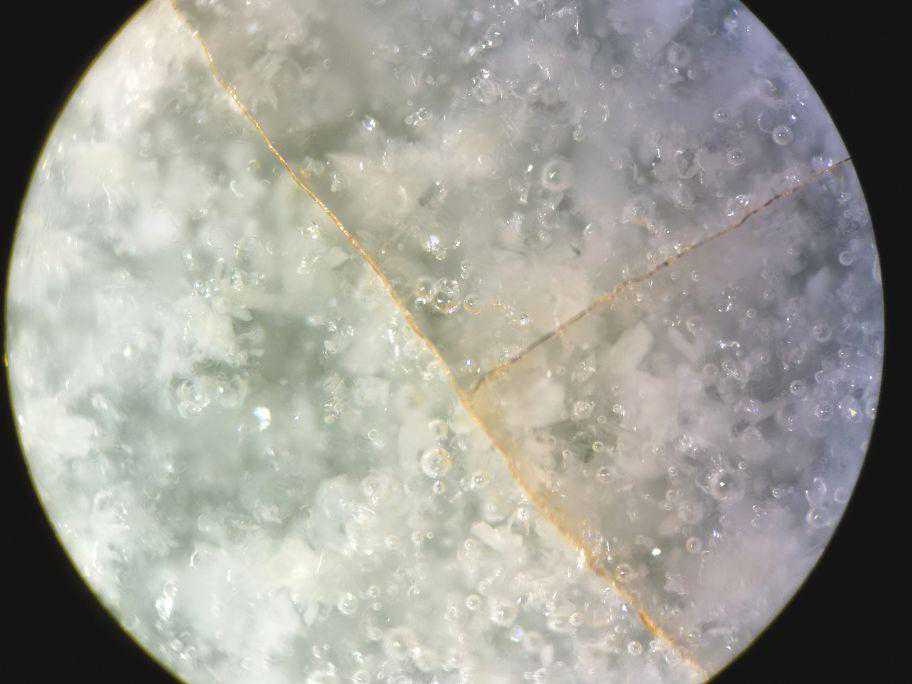 南宋官窑器其釉面质感具有明显的“玉质感”,质地犹如和田羊脂玉,属于半失透的乳浊釉。显微镜下可以观察到,